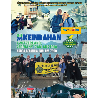 Tempat Lawatan:Zurich/Munich-Hallstat-Salzburg- Schwangau-Lestenau-Lucerne-Mt Titlis- Interlaken-Lauterbrunnen-Bern-Zurich | Skim Bayaran Mudah RM186/bulan x 48 bulan